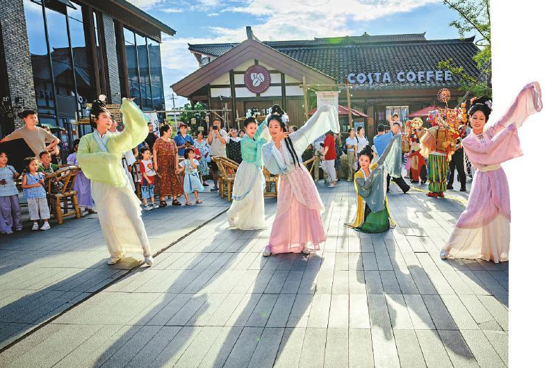 乌镇戏剧节嘉年华团队在彭州市百里一·龙兴集开演,让游客亲历《汴京闹市》的鲜活场景。周巧旻 摄(C视觉)